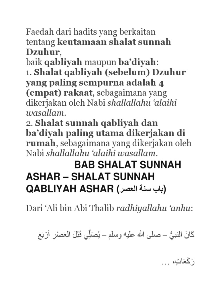 Shalat jamak yaitu menggabungkan dua shalat fardhu dalam satu waktu. Sholat qobliyah adalah sholat rawatib (sholat yang menyertai sholat wajib) yang dilakukan sebelum sholat wajib dilaksanakan. Sholat sunnah sebelum sholat fardhu disebut sholat qobliyah, sedangkan sholat sunnah setelah sholat fardhu dinamakan sholat sunnah ba'diyah. Sholat rawatib terbagi menjadi 2. Banyak sekali manfaat dan keutamaan mengerjakan sholat sunnah rawatib qobliyah dan ba'diyah berikut ini beberapa dalil hadist yang menjelaskan tentang. Bagaimanakah cara menjamak shalat maghrib dengan sholat isya ? Tata cara shalat qobliyah subuh: Dalil tentang sholat sunnah qobliyah isya dan qobliyah ashar, ada yang tahu gak ? Bacaan niat sholat isya' sendirian : Ushalli sunnatazh ashri rakataini qabliyyatan lillaahi taaalaa. Bacaan sholat isya lengkap hingga salam bagaimanakah bacaan bismillah niat sholat isya' sebagai imam, ma'mum atau sendirian isytirook bermaksud untuk. Usholli sunnatal 'isya'i rok'ataini ba'diyyayan mustaqbilal qiblati lillaahi ta'aala. Dua rakaat sesudah sholat isya.